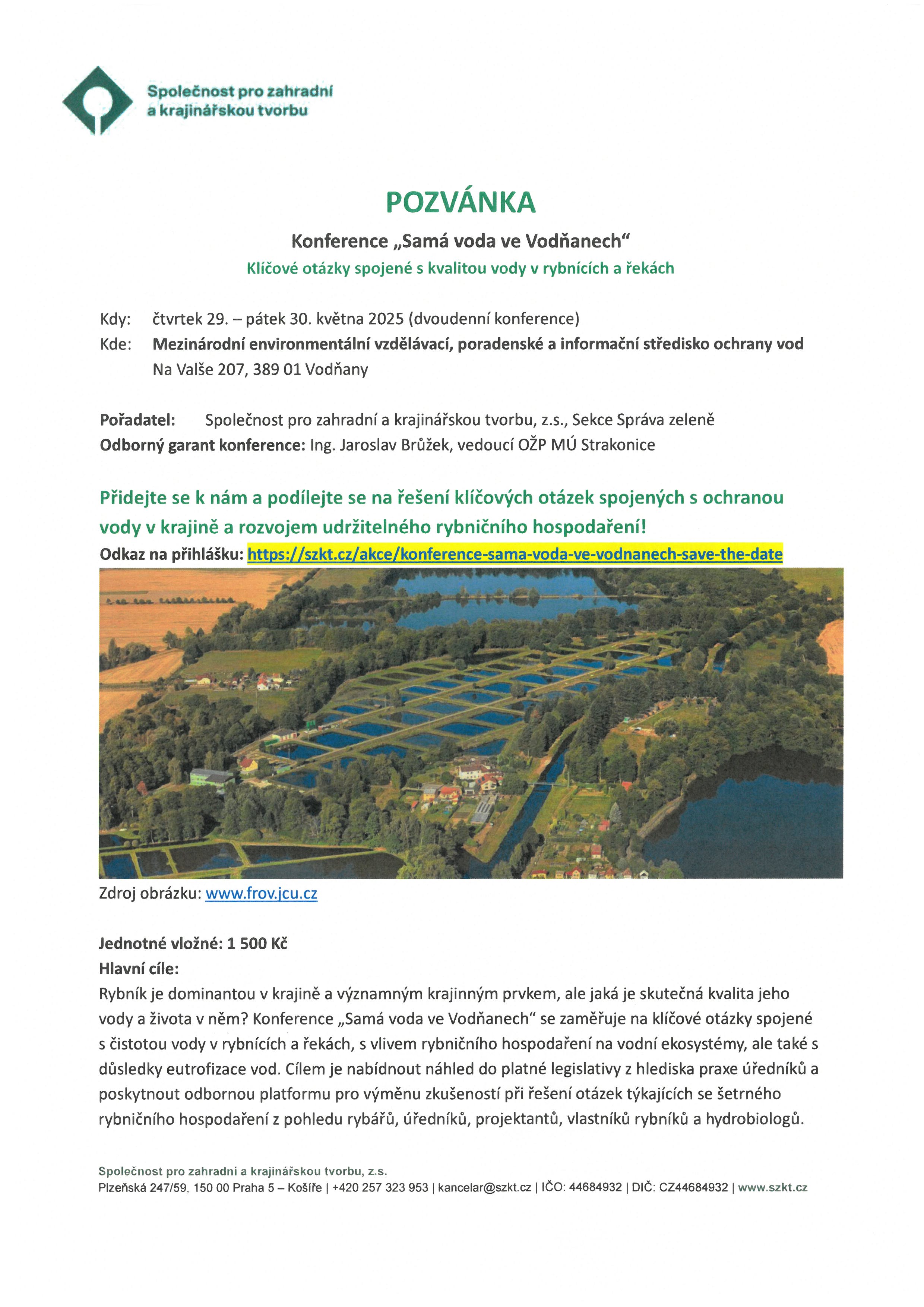Odkaz na přihlášku: https://szkt.cz/akce/konference-sama-voda-ve-vodnanech-save-the-date