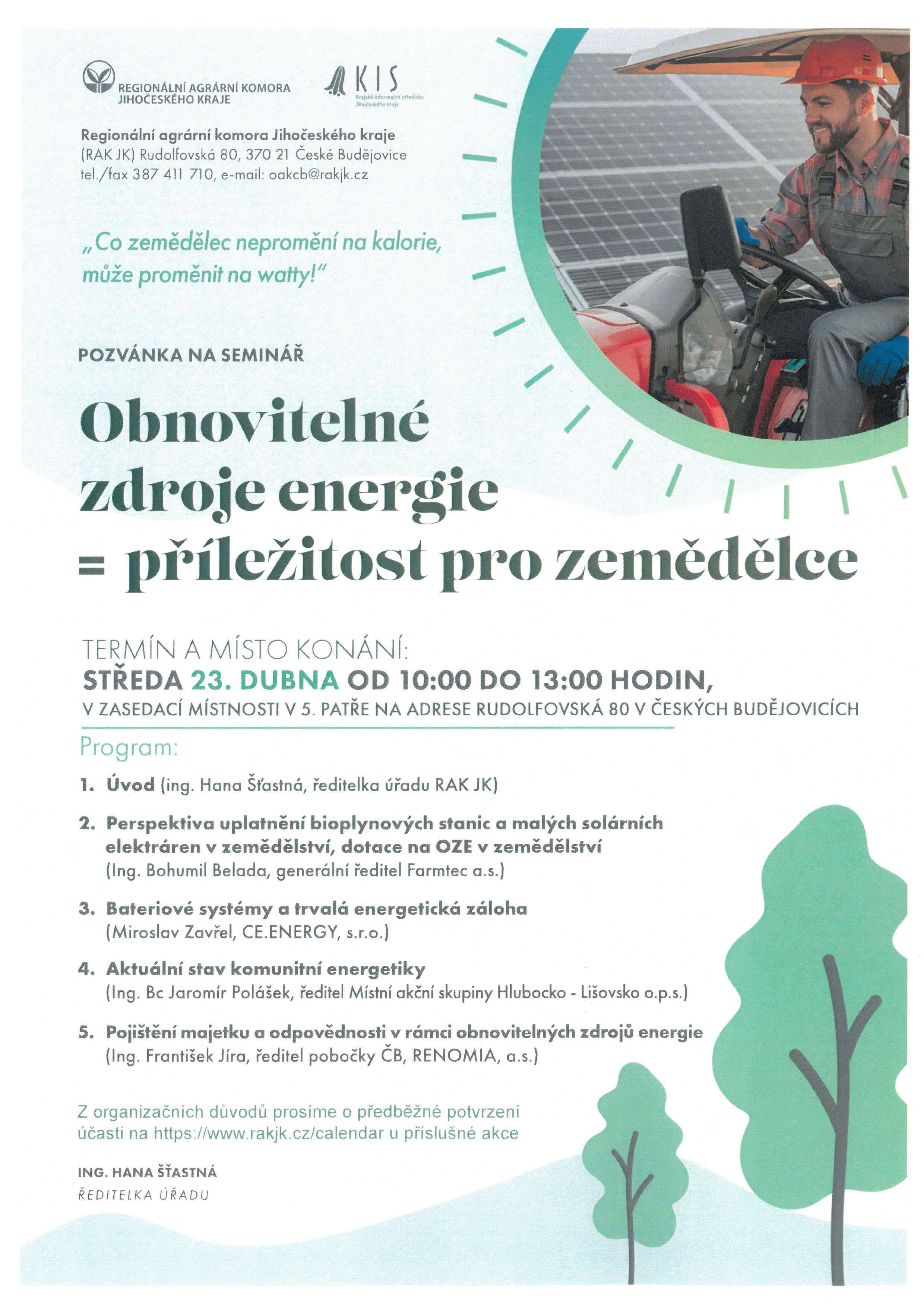 Akci pořádá Regionální agrární komora Jihočeského kraje.