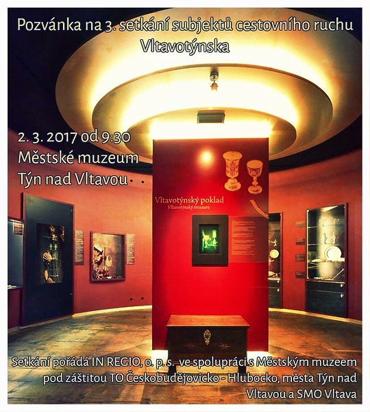 Společnost INREGIO, Vás co nejsrdečněji zve na setkání subjektů cestovního ruchu Vltavotýnska, které se uskuteční ve čtvrtek 2. března od 9:30 hodin v Městském muzeu v Týně nad Vltavou. Tématem tohoto již třetího setkání je spolupráce mezi subjekty turistické oblasti Českobudějovicko – Hlubocko. Zástupci jednotlivých podoblastí představí turistické zajímavosti a novinky pro nadcházející sezónu ze svého regionu. Poté bude následovat diskuze a program ukončí prohlídka moderních interaktivních expozic Městského muzea a výstavy Václava Bláhy v Městské galerii.